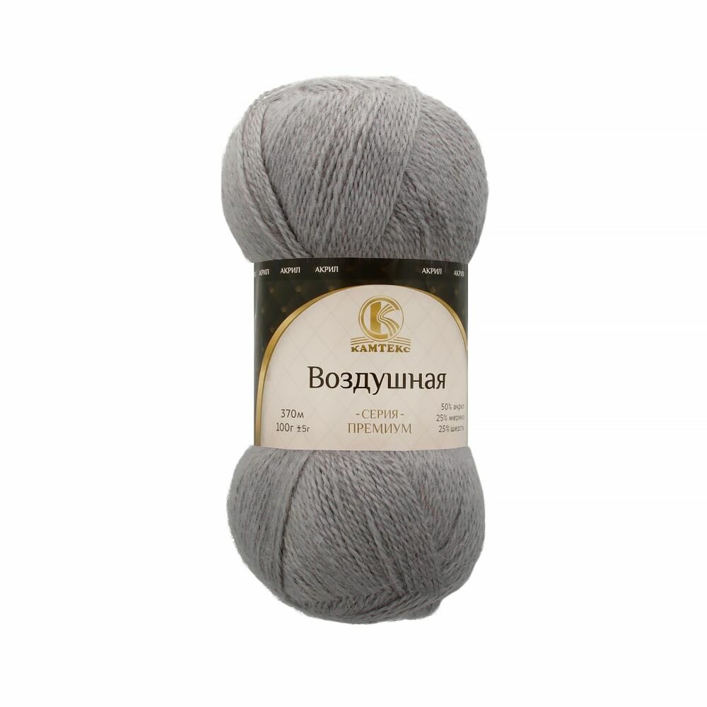 Пряжа Камтекс КТ 'Воздушная' 50% акрил, 25% шерсть, 25% мериносовая шерсть 100 г 370 м цвет 169 серый