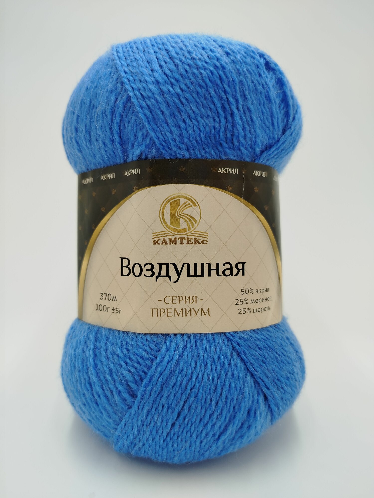 Пряжа Воздушная (Камтекс), голубой - 015, 25% мериносовая шерсть, 25% шерсть, 50% акрил, 5 мотков, 100 г, 370 м.