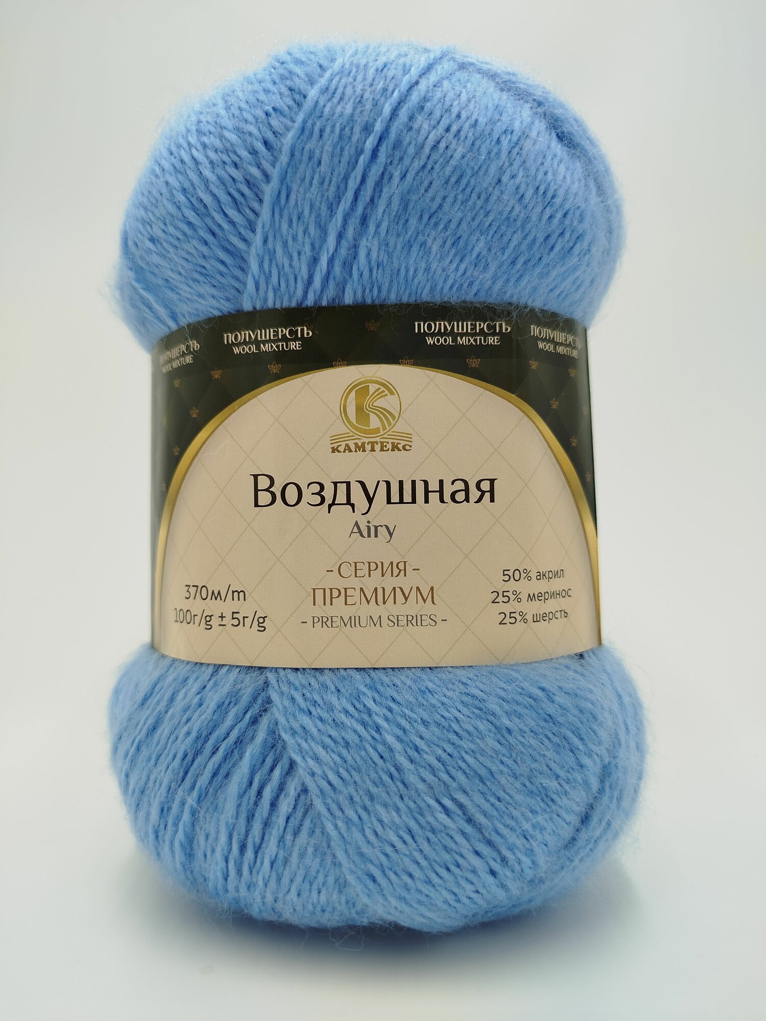 Пряжа Воздушная (Камтекс), голубой - 015, 25% мериносовая шерсть, 25% шерсть, 50% акрил, 5 мотков, 100 г, 370 м.