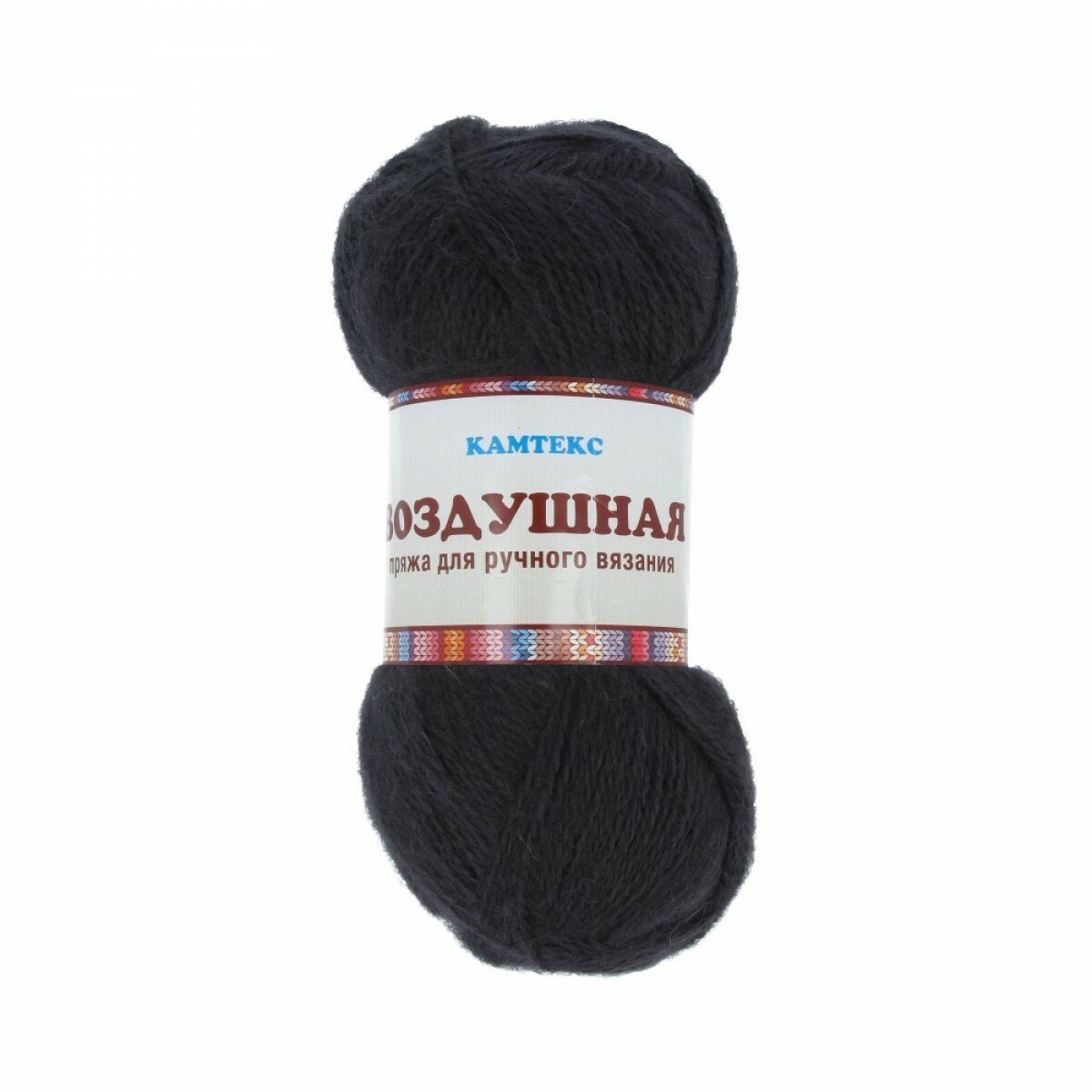 Пряжа для вязания Камтекс 'Воздушная' 100г, 370м (25% меринос, 25% шерсть, 50% акрил) (003 черный), 5 мотков 955 ₽