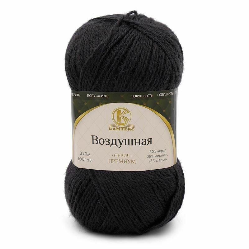 Пряжа для вязания Камтекс 'Воздушная' 100г, 370м (25% меринос, 25% шерсть, 50% акрил) (003 черный), 5 мотков 955 ₽