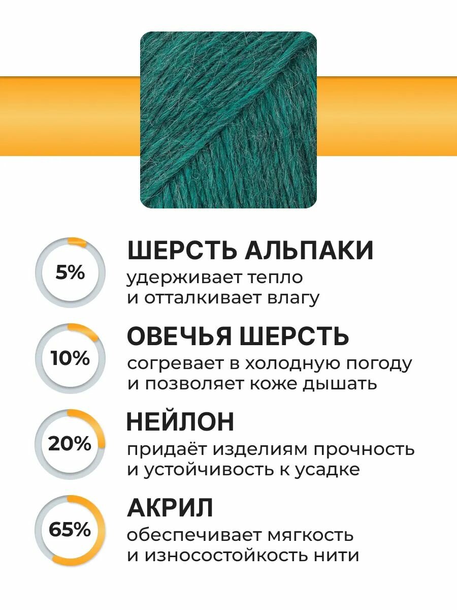 Пряжа для вязания Вязь 'Альпа' 100г, 320м (5% альпака, 10% шерсть, 20% нейлон, 65% акрил) (03 зеленый), 3 мотка информация: