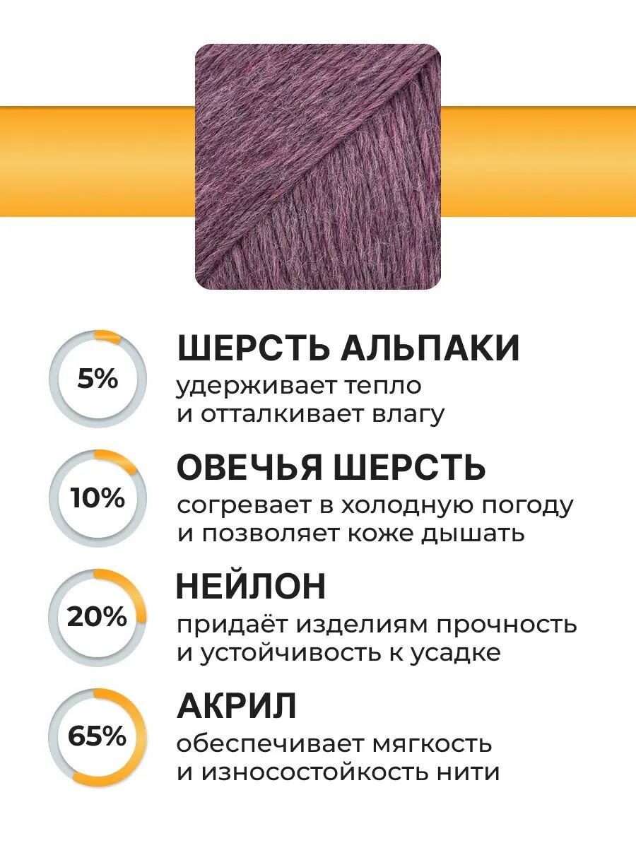 Пряжа для вязания Вязь 'Альпа' 100г, 320м (5% альпака, 10% шерсть, 20% нейлон, 65% акрил) (07 фиолетовый), 3 мотка информация: