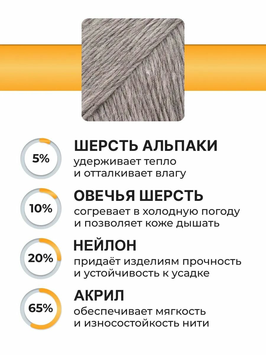 Пряжа для вязания Вязь 'Альпа' 100г, 320м (5% альпака, 10% шерсть, 20% нейлон, 65% акрил) (10 серый), 3 мотка 624 ₽