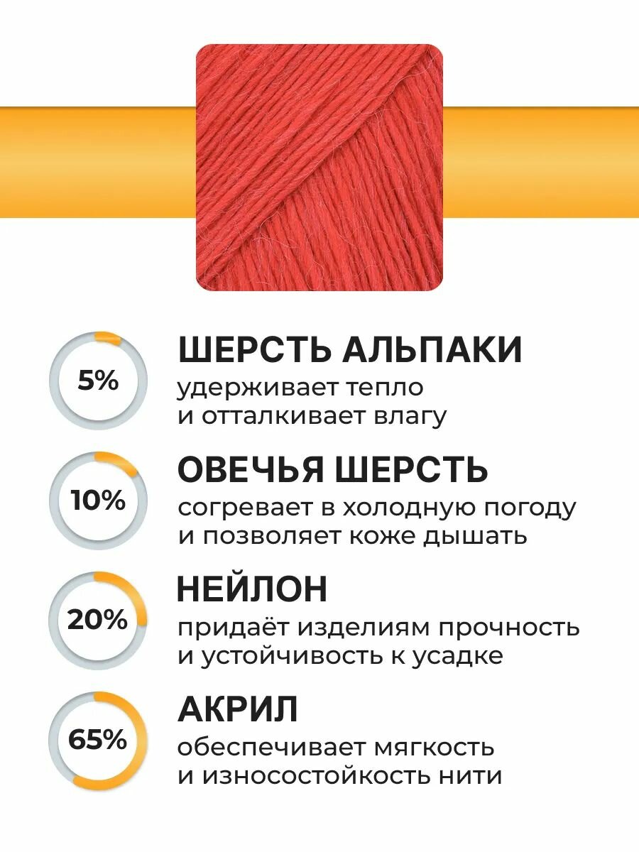 Пряжа для вязания Вязь 'Альпа' 100г, 320м (5% альпака, 10% шерсть, 20% нейлон, 65% акрил) (14 красный), 3 мотка информация: