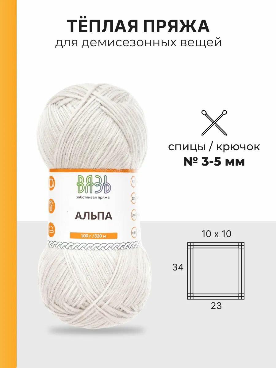 Отзывы на Пряжа для вязания Вязь 'Альпа' 100г, 320м (5% альпака, 10% шерсть, 20% нейлон, 65% акрил) (10 серый), 3 мотка