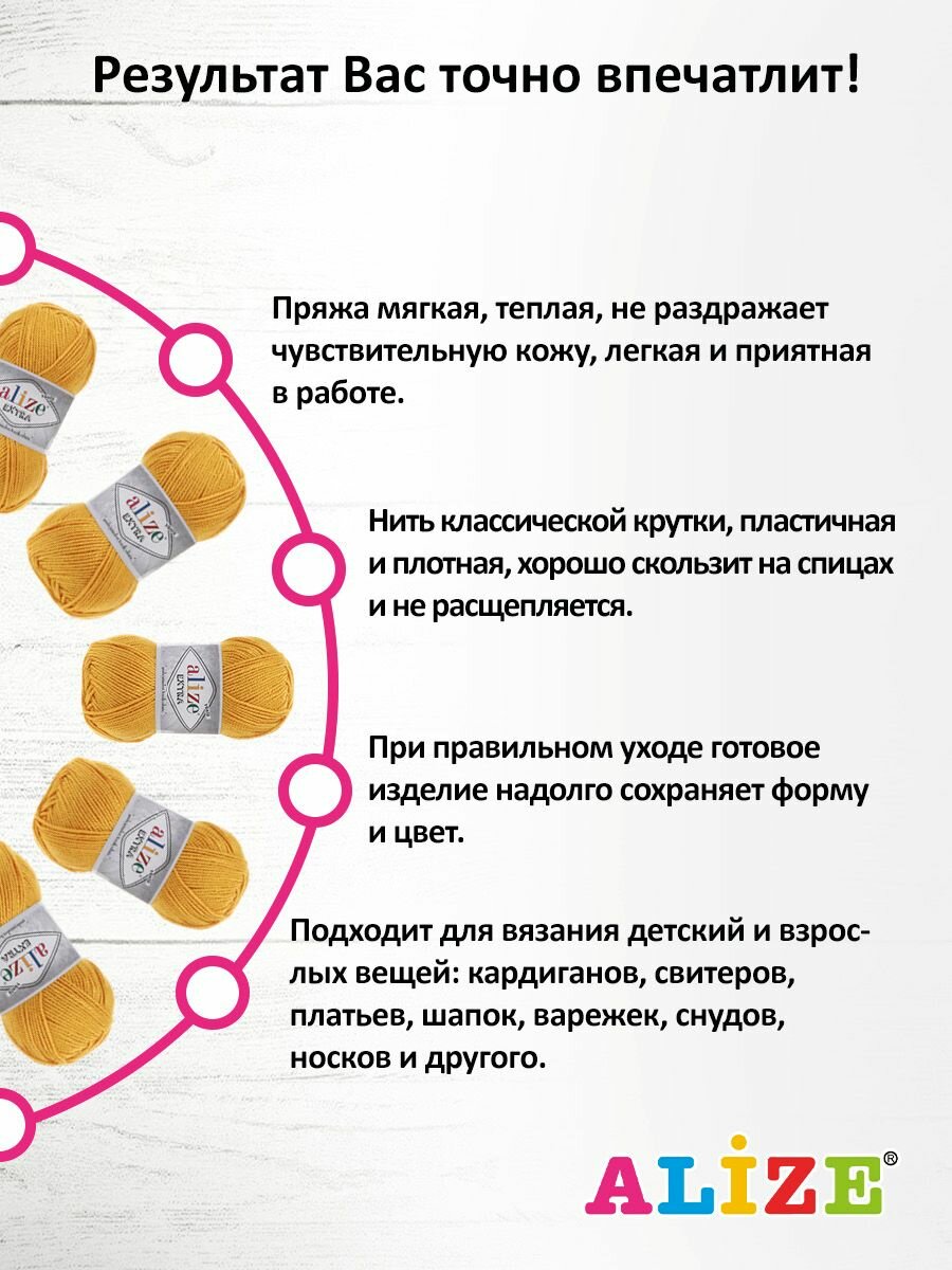 Отзывы на Пряжа для вязания ALIZE 'Extra', 100г, 220м (100% акрил) (488 тёмно-жёлтый), 5 мотков