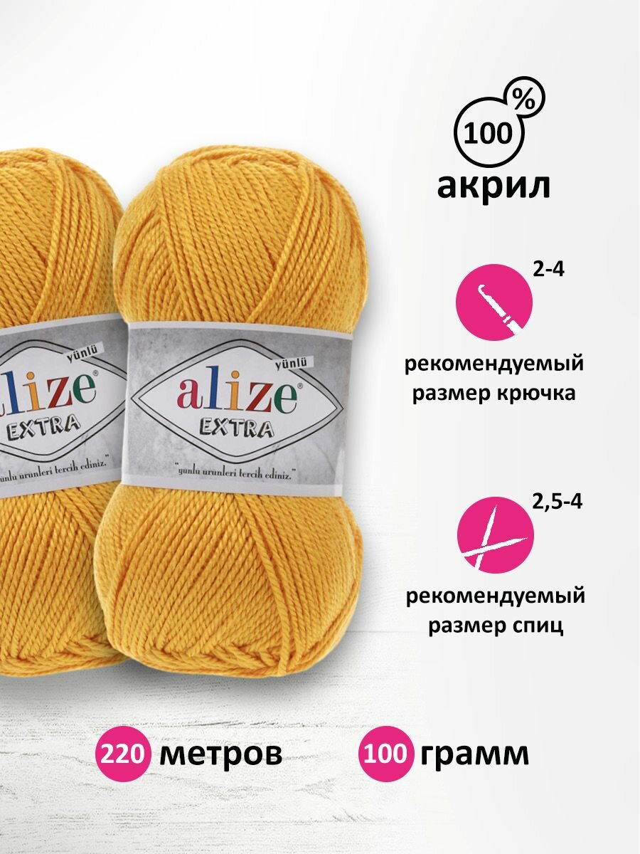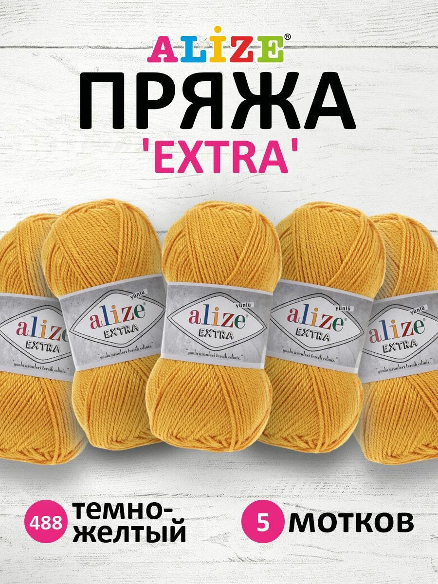 Пряжа для вязания ALIZE 'Extra', 100г, 220м (100% акрил) (488 тёмно-жёлтый), 5 мотков информация: