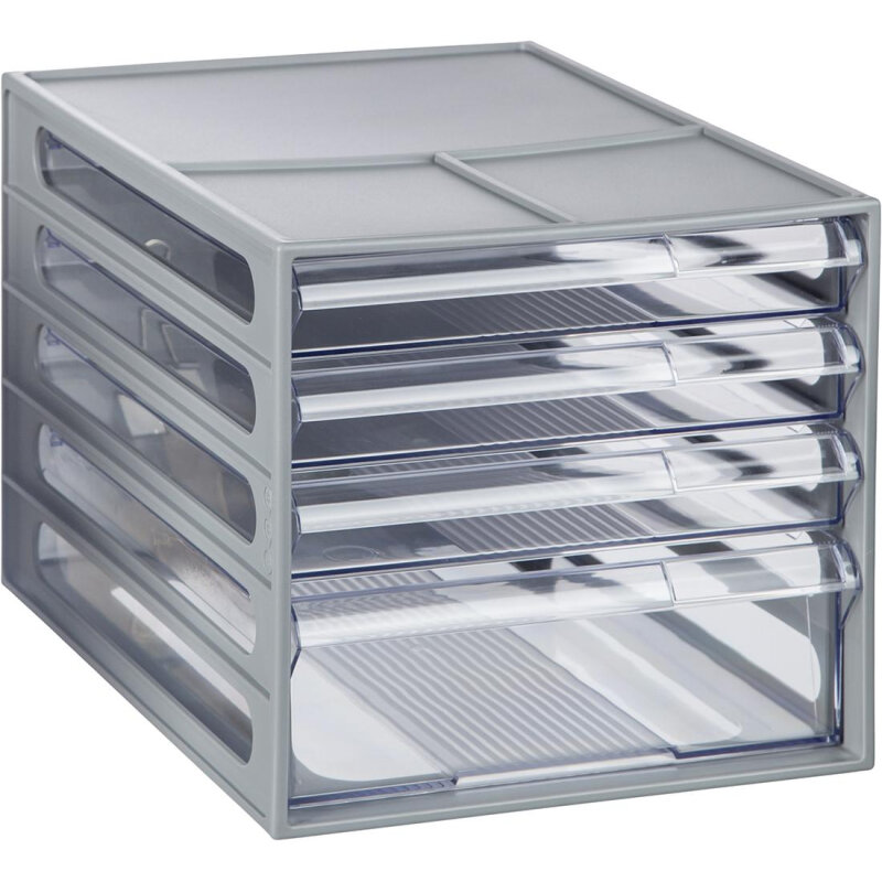 Блок из 4 выдвижных лотков Стамм, серый корпус, прозрачные лотки (арт. 323302)