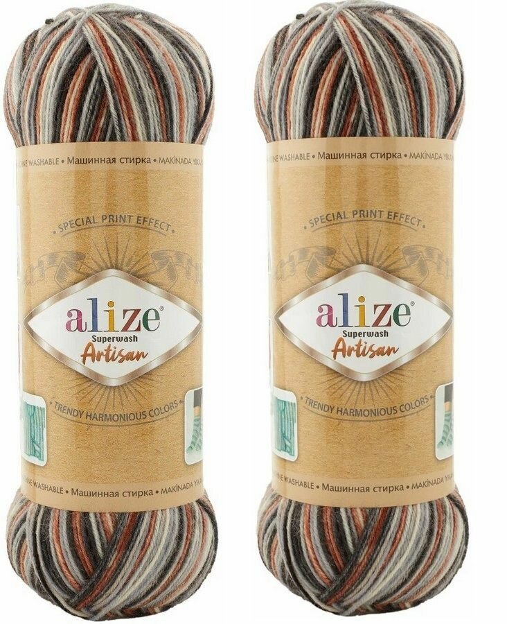Отзывы на Пряжа носочная Alize "Artisan" superwash (75% шерсть, 25% полиамид) 2 мотка по 100 гр/420 м цвет 9013 серый/черный/корица