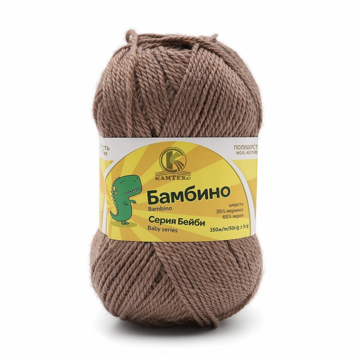 Пряжа для вязания Камтекс 'Бамбино' 50г, 150м (35% шерсть меринос, 65% акрил) (113 какао), 10 мотков информация: