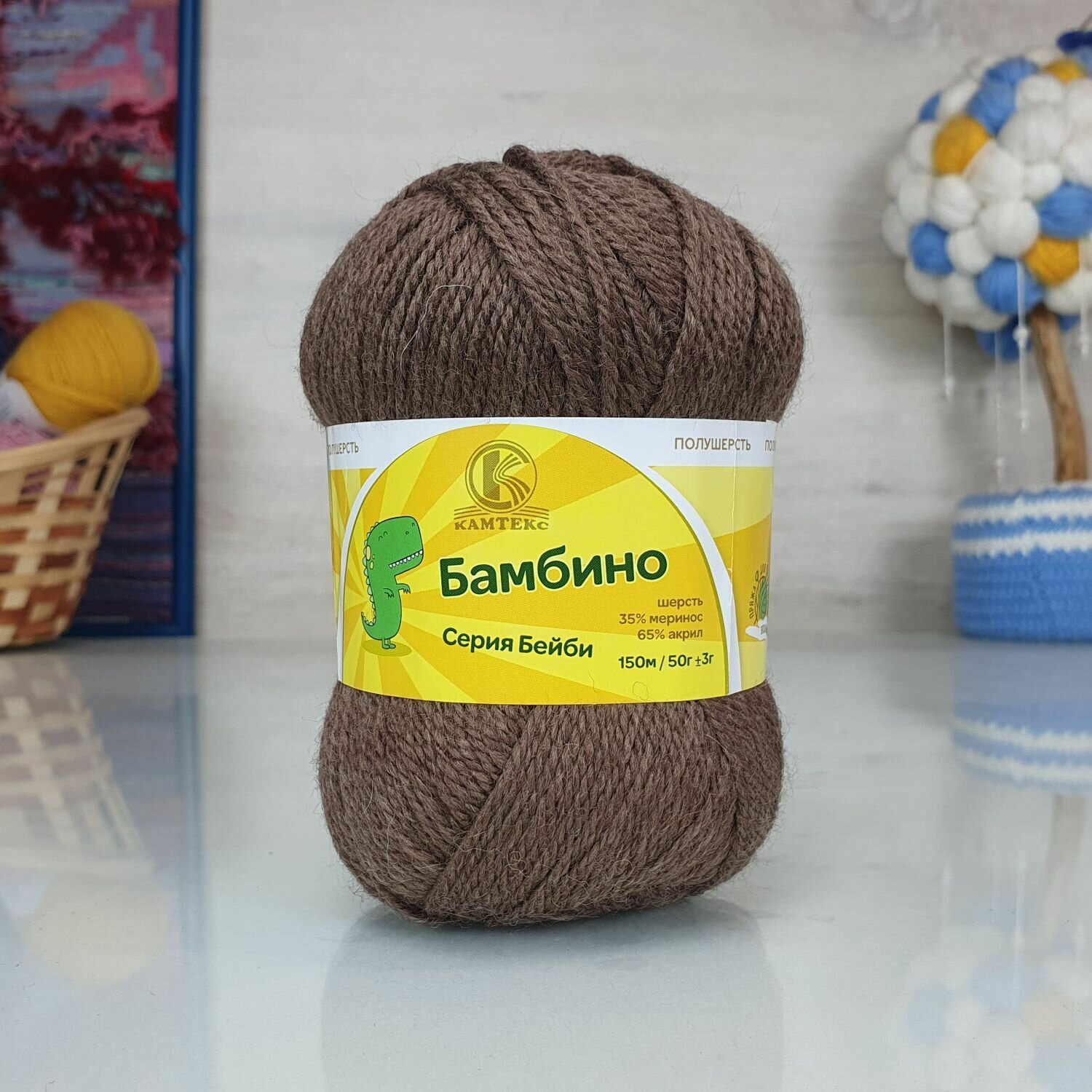 Пряжа Бамбино (Камтекс), кофе - 233, 35% мериносовая шерсть, 65% акрил, 10 мотков, 50 г, 150 м. информация: