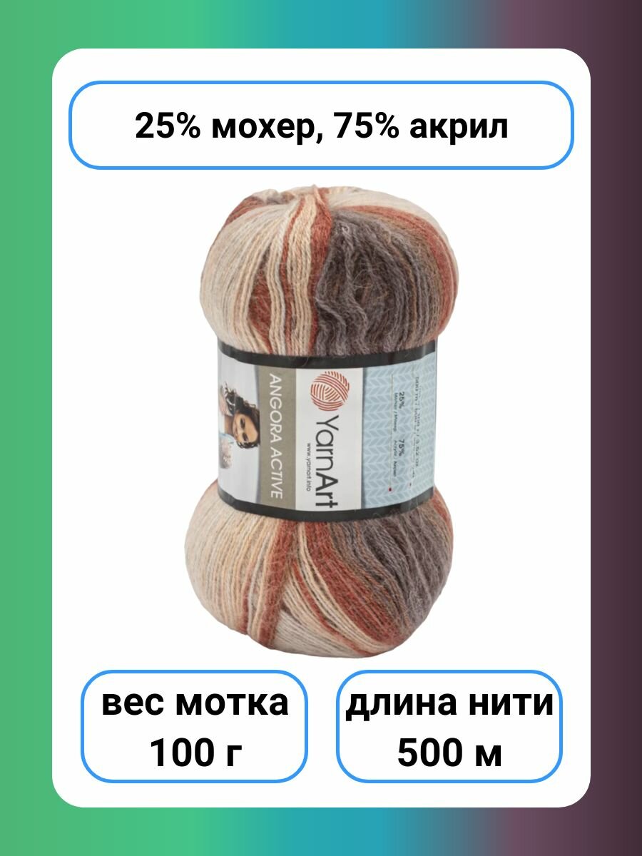 Пряжа для вязания YarnArt 'Angora Active' 100г, 500м (20% мохер, 80% акрил) (853 меланж), 5 мотков 1 078 ₽