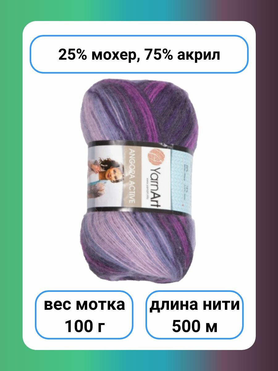 Пряжа для вязания YarnArt 'Angora Active' 100г, 500м (20% мохер, 80% акрил) (853 меланж), 5 мотков 1 078 ₽