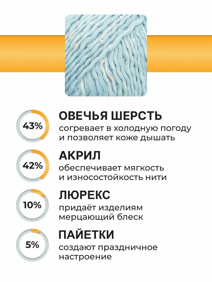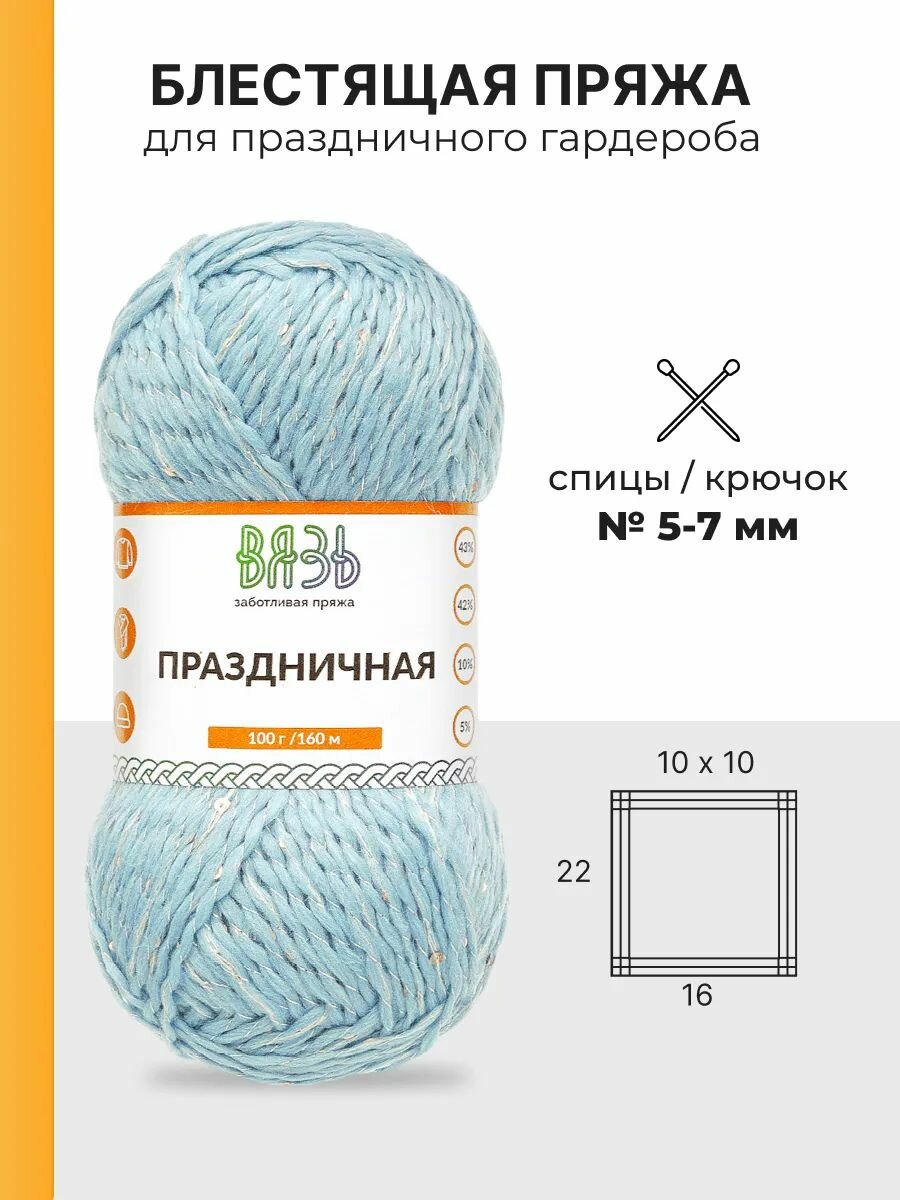 10 цен на Пряжа для вязания Вязь 'Праздничная' 100г, 160м (43% шерсть, 42% акрил, 10% люрекс, 5% пайетки) (02 голубой), 3 мотка