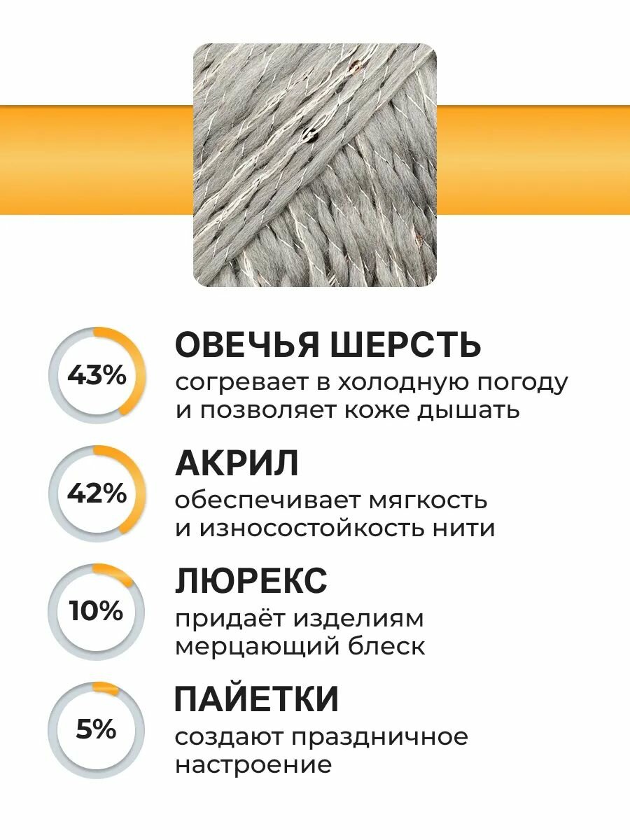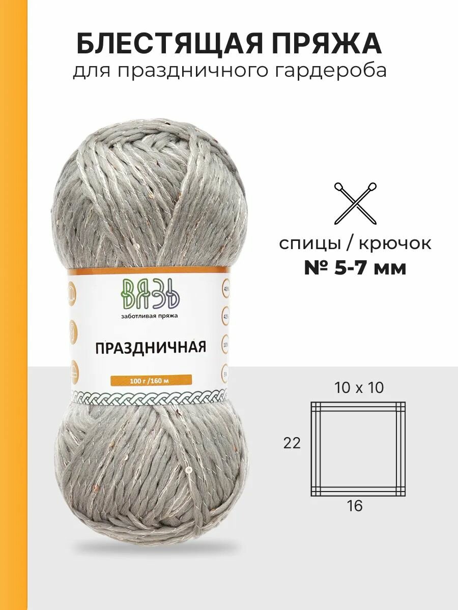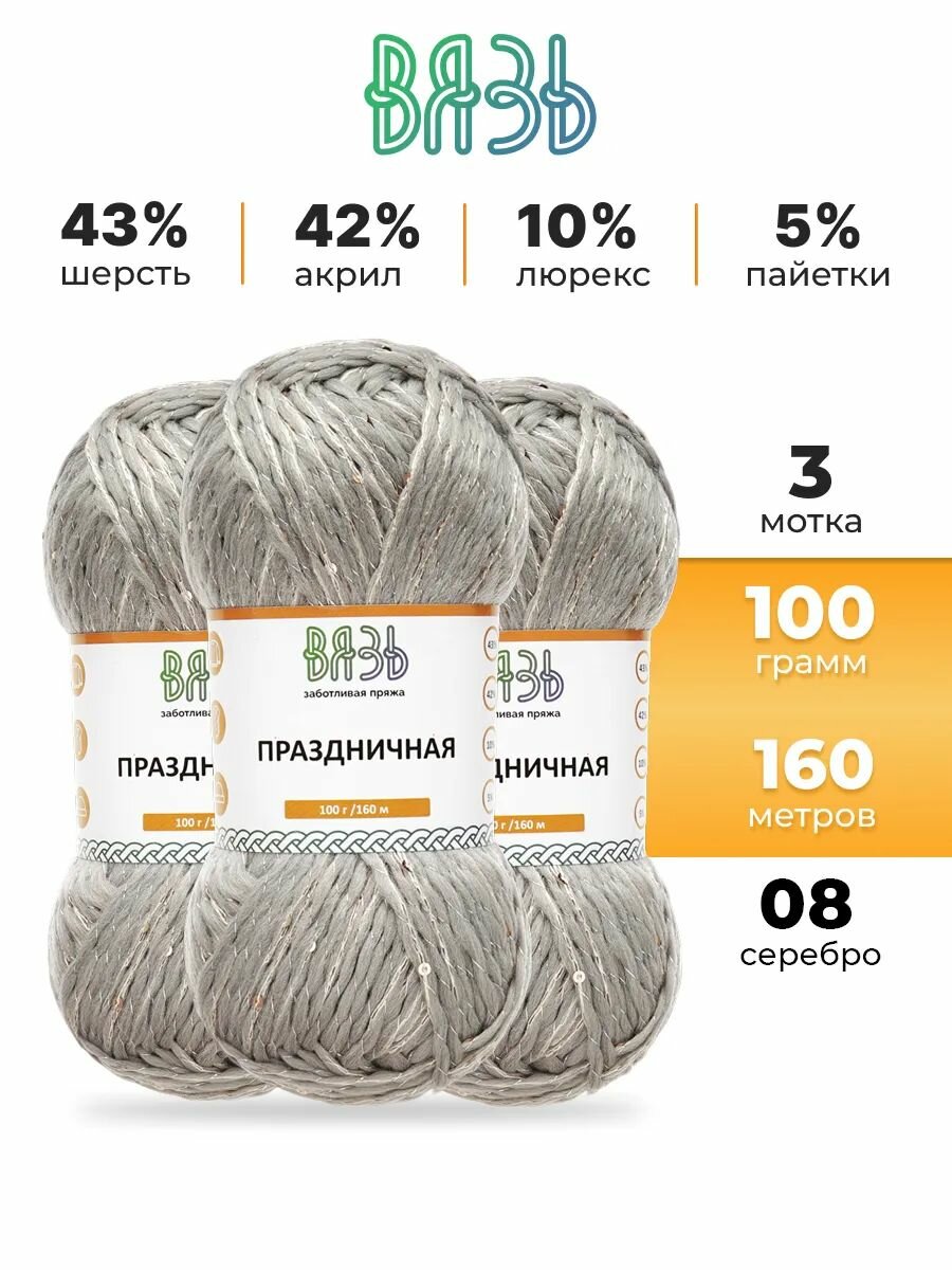 Пряжа для вязания Вязь 'Праздничная' 100г, 160м (43% шерсть, 42% акрил, 10% люрекс, 5% пайетки) (08 серебро), 3 мотка информация: