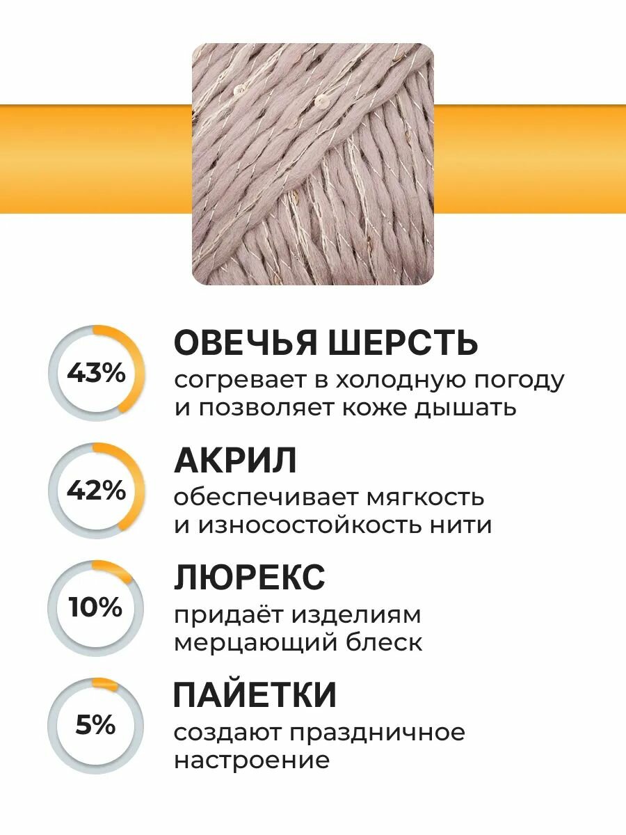 Пряжа для вязания Вязь 'Праздничная' 100г, 160м (43% шерсть, 42% акрил, 10% люрекс, 5% пайетки) (01 розовый), 3 мотка информация: