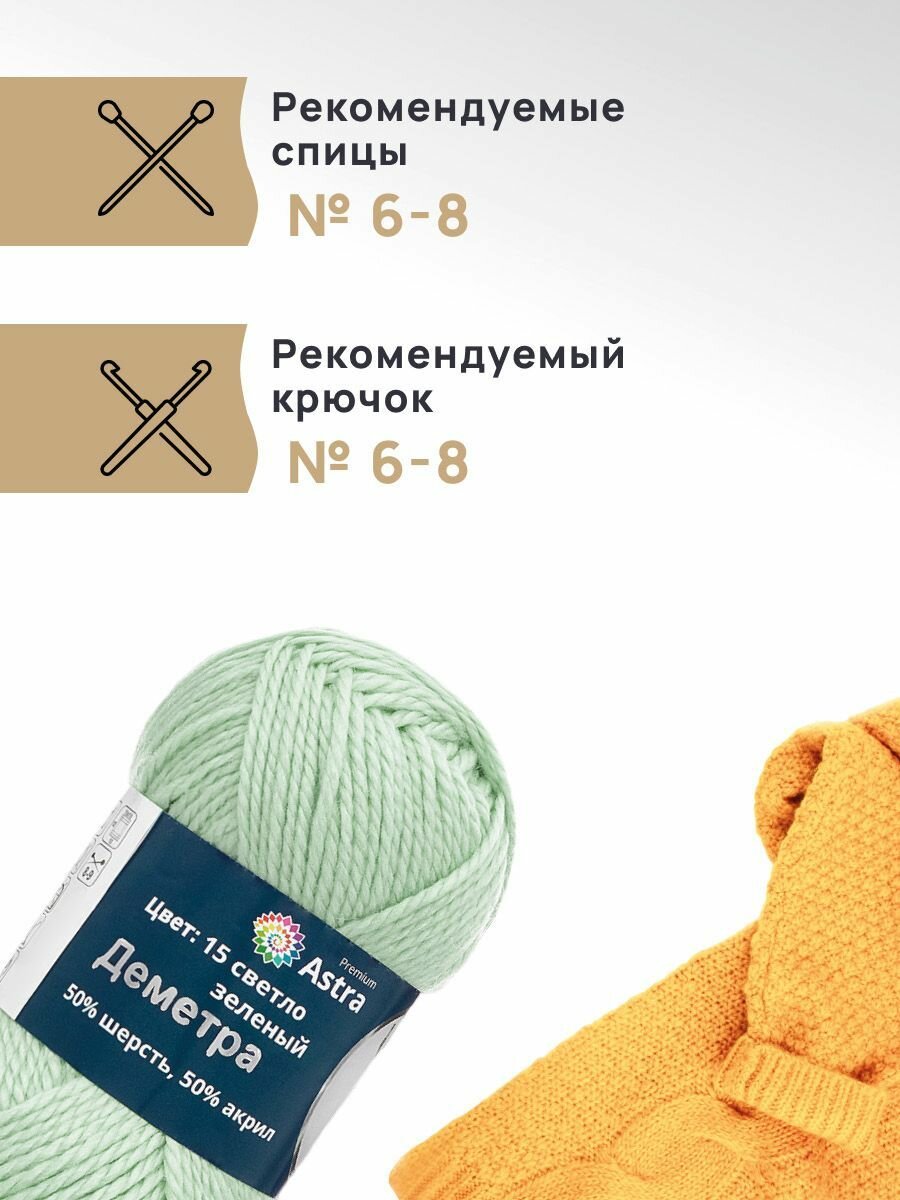 Пряжа для вязания Astra Premium 'Деметра' 100г, 100м (50% шерсть, 50% акрил) (15 светло-зеленый), 3 мотка информация: