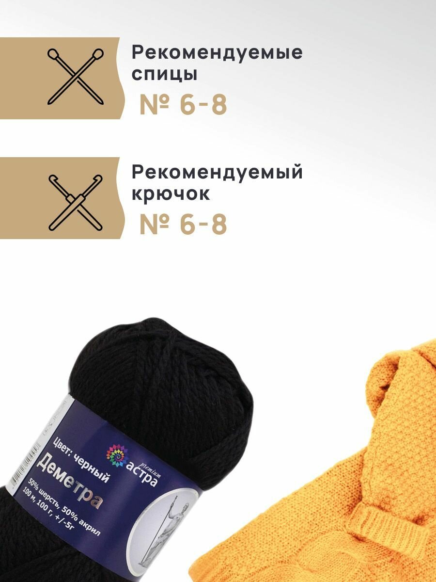 Пряжа для вязания Astra Premium 'Деметра' 100г, 100м (50% шерсть, 50% акрил) (02 черный), 3 мотка информация: