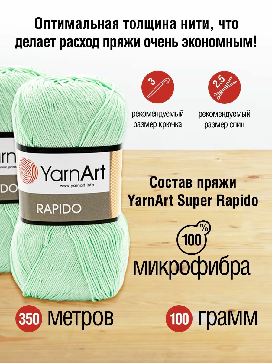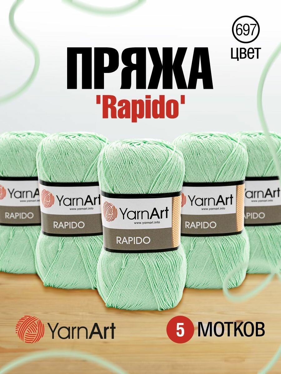 Пряжа для вязания YarnArt 'Rapido' 100г, 350м (100% микрофибра акрил) (697 мятный), 5 мотков информация: