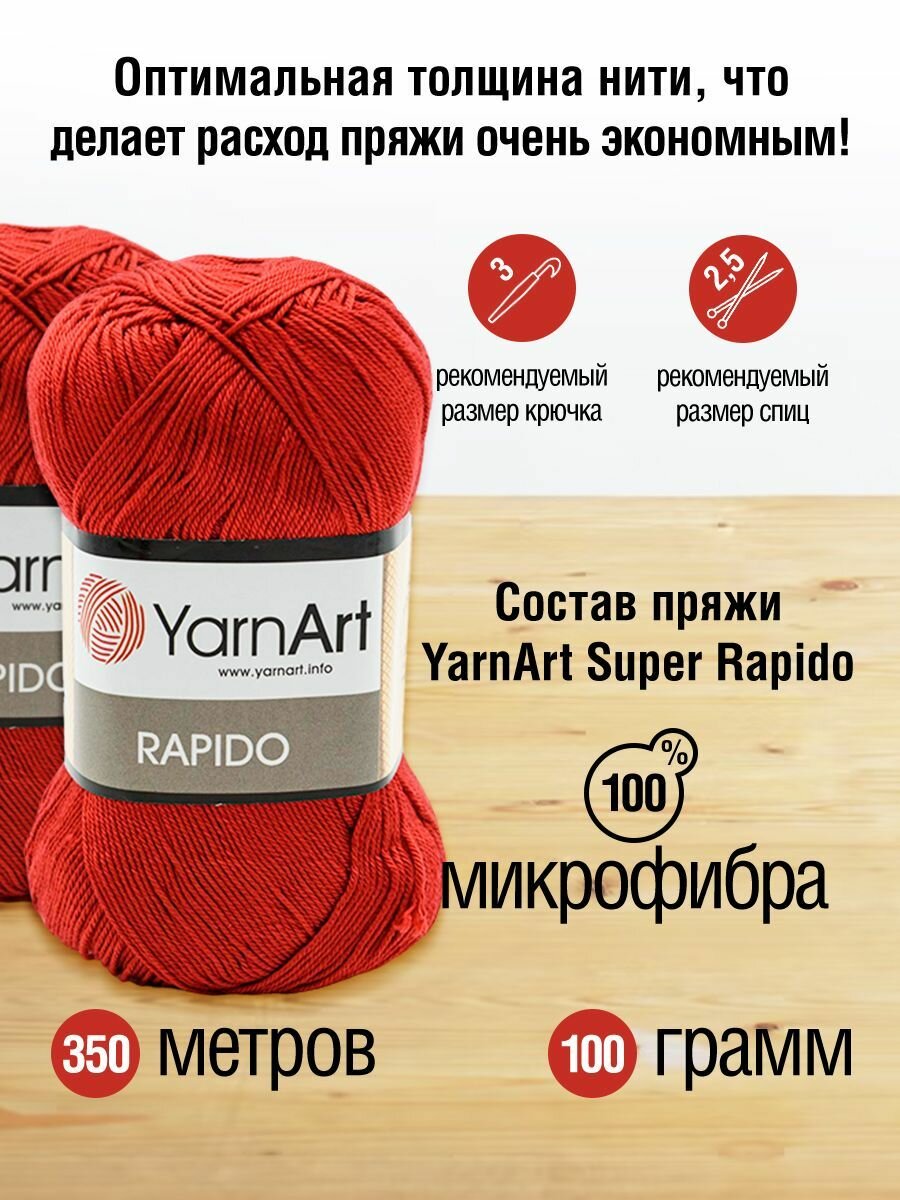 Пряжа для вязания YarnArt 'Rapido' 100г, 350м (100% микрофибра акрил) (701 красный), 5 мотков информация: