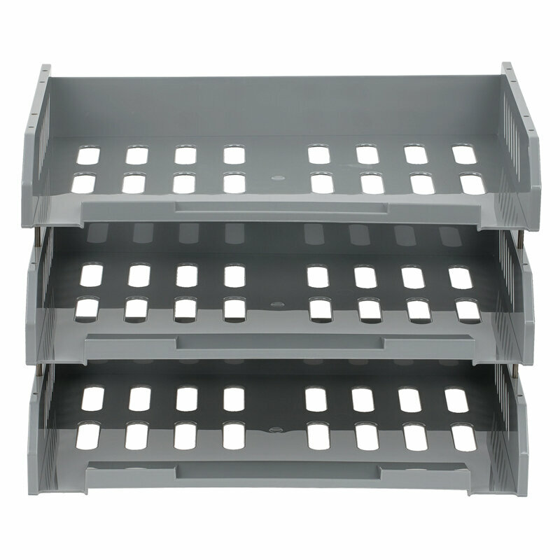 10 цен на Лотки горизонтальные для бумаг, набор 3 шт. (335х232х280 мм), на металлических стержнях 60 мм, серые, СТАММ "Сити", ЛТ561