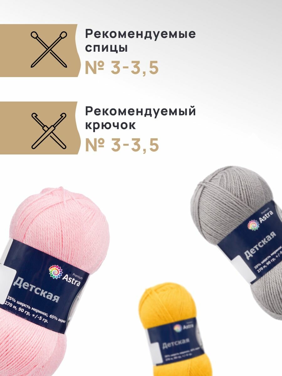 Пряжа для вязания Astra Premium 'Детская' 90г, 270м (35% шерсть меринос, 65% акрил) (145 ледяная мята), 3 мотка информация: