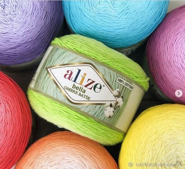 Пряжа для вязания крючком, спицами Alize Ализе Bella Ombre Batik тонкая, хлопок 100%, цвет 7405 флокс, 5 шт. по 250 г, 900 м