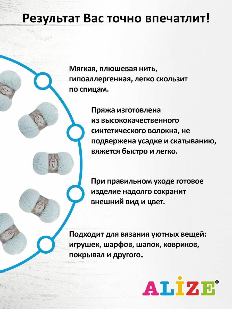 Пряжа для вязания плюшевая Alize Softy Plus, цвет 183 светло-голубой, 100г, 120м, 5 шт/упак 1 162 ₽