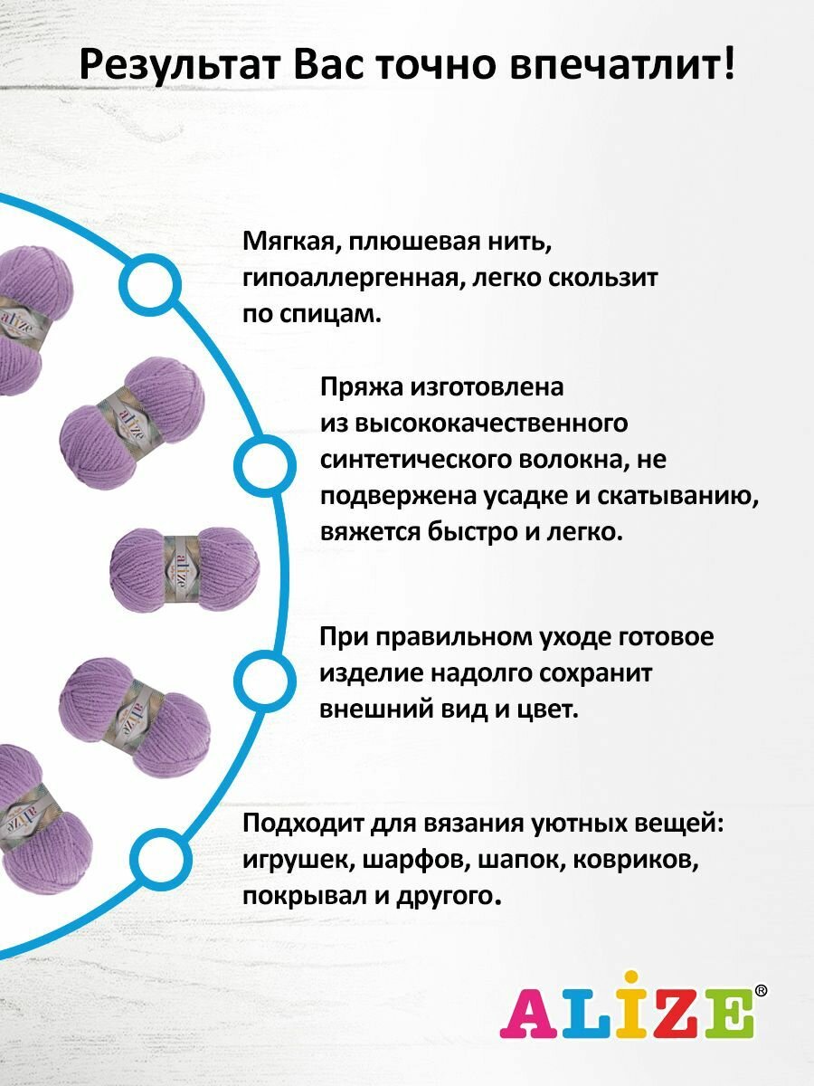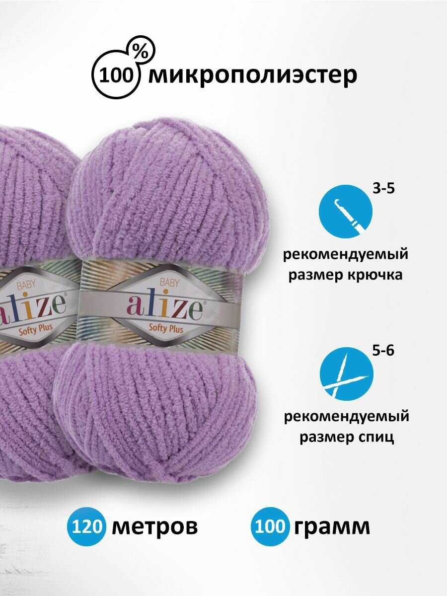 Пряжа для вязания ALIZE 'Softy Plus', 100г, 120м (100% микрополиэстер) (47 сирень), 5 мотков информация: