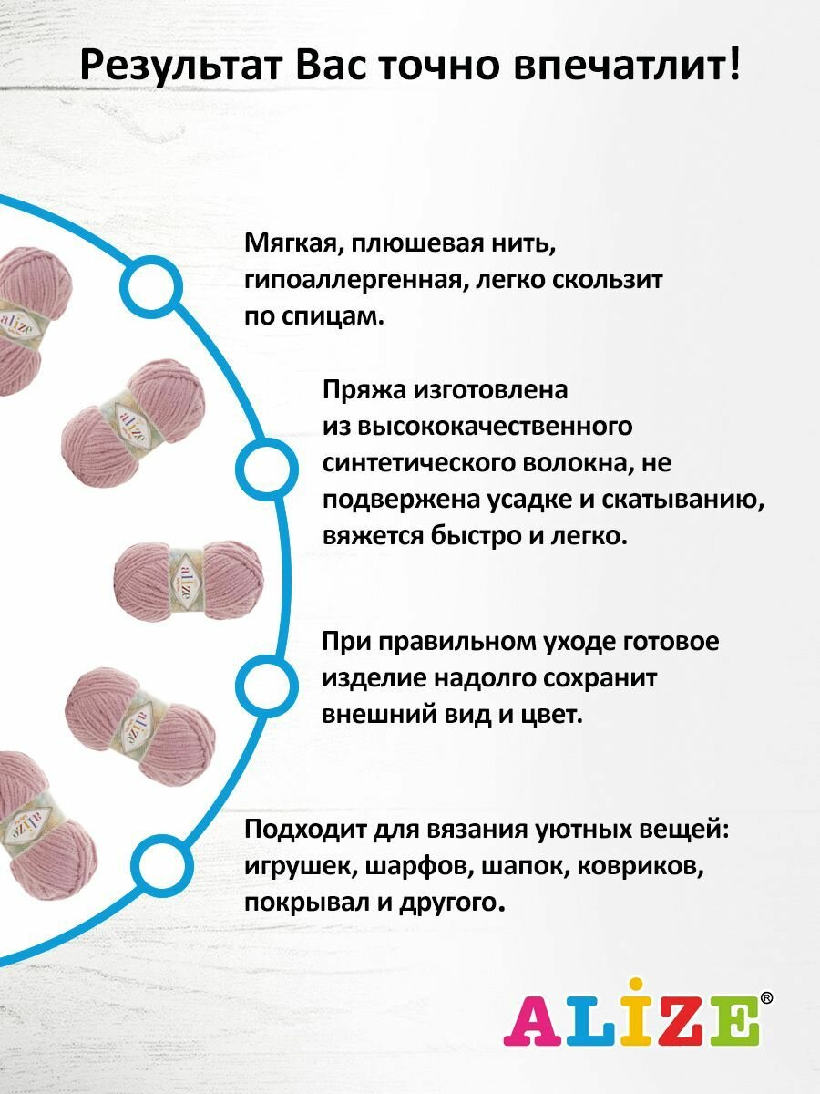 Пряжа ALIZE "Softy Plus", 100 г, 120 м, 100% микрополиэстер, цвет 340 Пудровый, 5 мотков 1 196 ₽
