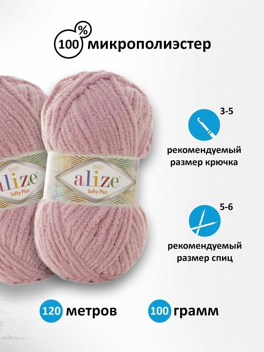 Пряжа для вязания ALIZE SOFTY PLUS Ализе Софти плюс: 340 (светло-розовый), 3 шт 120 м 100 г, 100% микрополиэстер 743 ₽