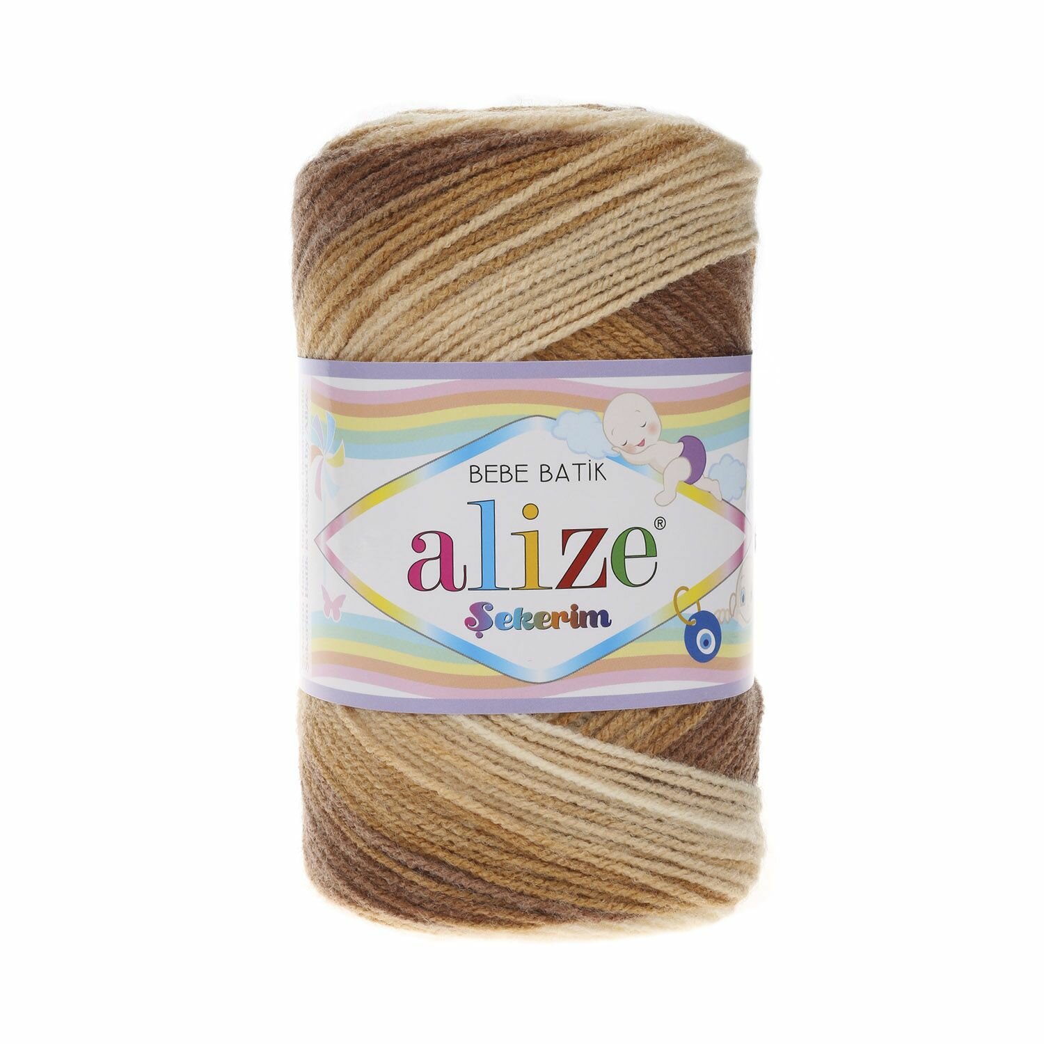 Пряжа Alize Sekerim bebe batik (3050 белый-молочный-коричневый-охра), 5 шт. по 100 г, Alize