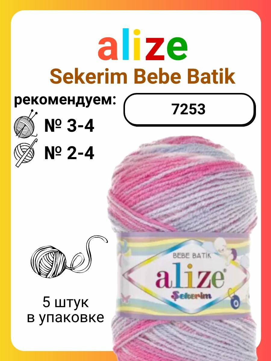 Пряжа для вязания Alize Sekerim Bebe Batik 7253, 100 г, 320 м, 5 штук информация: