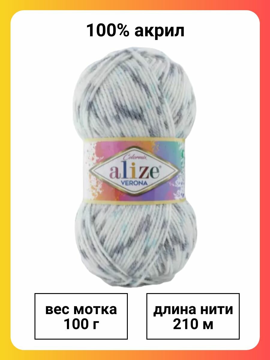 Пряжа Verona Alize, принт - 7812, 100% акрил, 5 мотков, 100 г, 210 м.