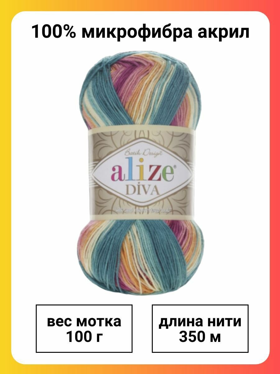 Пряжа Дива батик (Diva batik Alize) упаковка 5 мотков 100 г. 350 м. 100% микрофибра акрил цвет 3245 1 534 ₽