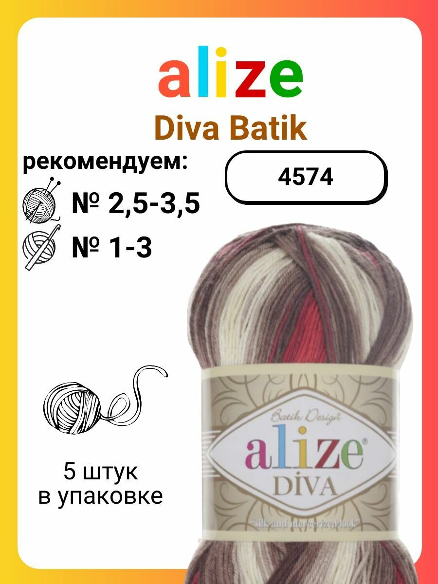 10 цен на Пряжа для вязания Alize Diva Batik 4574, 100 г, 350 м, 5 штук
