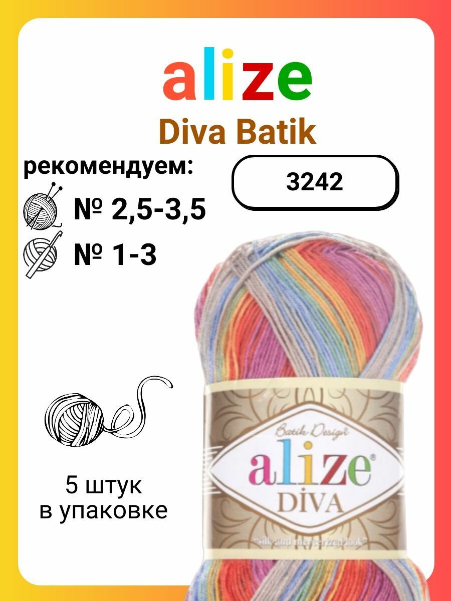 Пряжа для вязания Alize Diva Batik 3242, 100 г, 350 м, 5 штук информация: