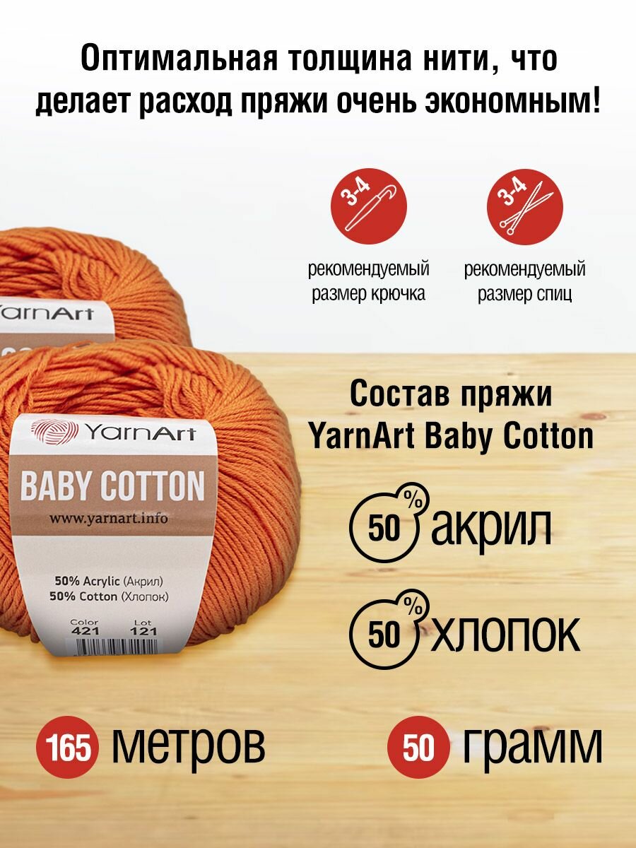 Пряжа для вязания YarnArt 'Baby Cotton' 50г, 165м (50% хлопок, 50% акрил) (421 оранжевый), 10 мотков информация: