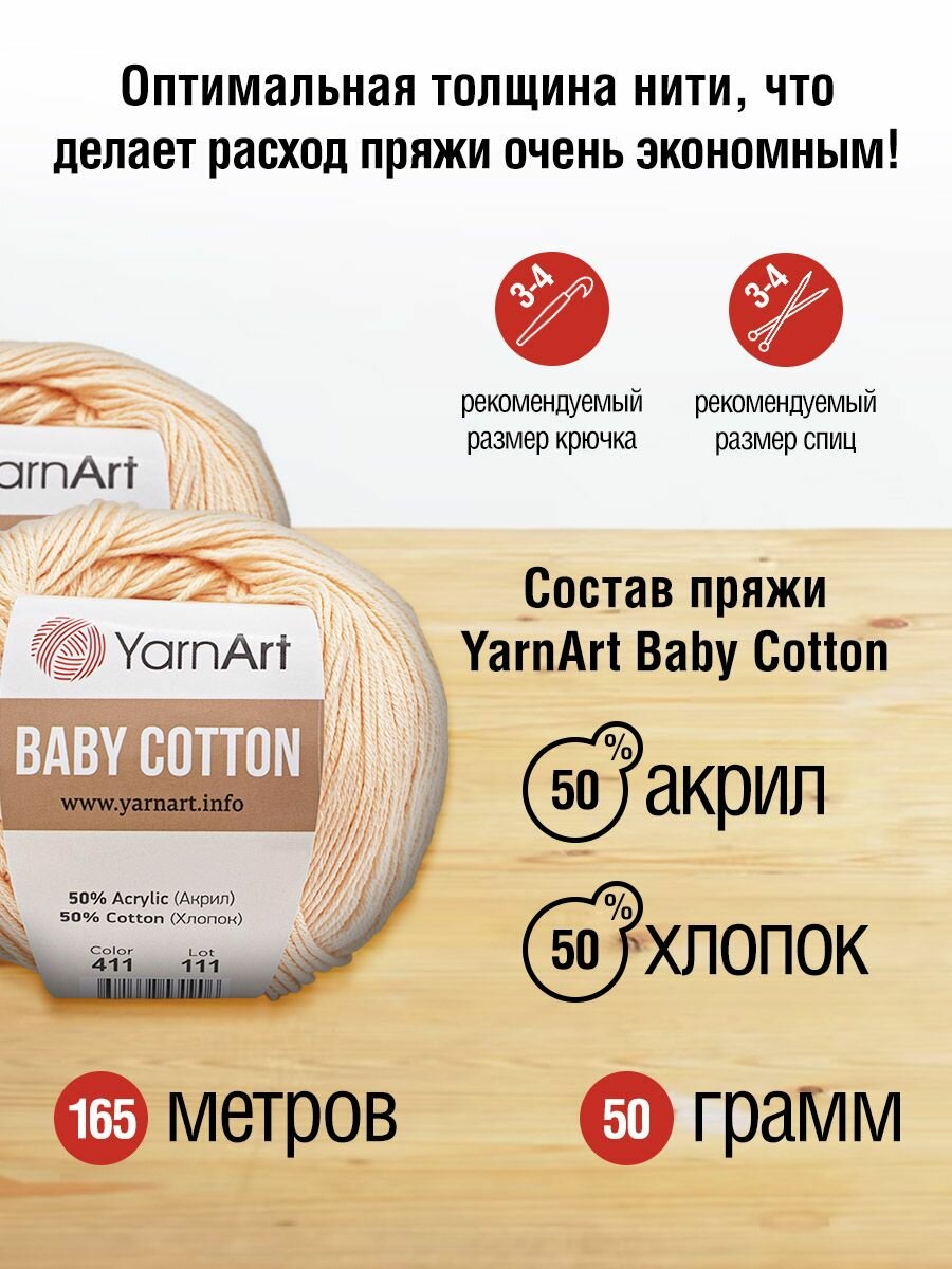 Пряжа Yarnart Baby Cotton 403 светло-бежевый | ярн арт 10шт 1 551 ₽