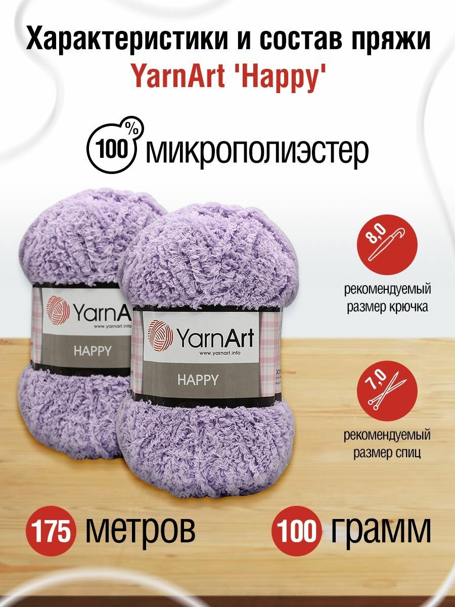 Пряжа для вязания YarnArt 'Happy' 100г, 175м (100% микрополиэстер) (777 сиреневый), 4 мотка информация: