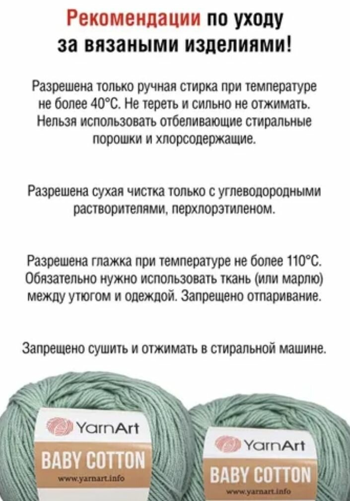 Пряжа для вязания YarnArt Baby Cotton 50гр 165 м хлопок акрил детская 10 мотков 435 светло-зеленый 4 654 ₽