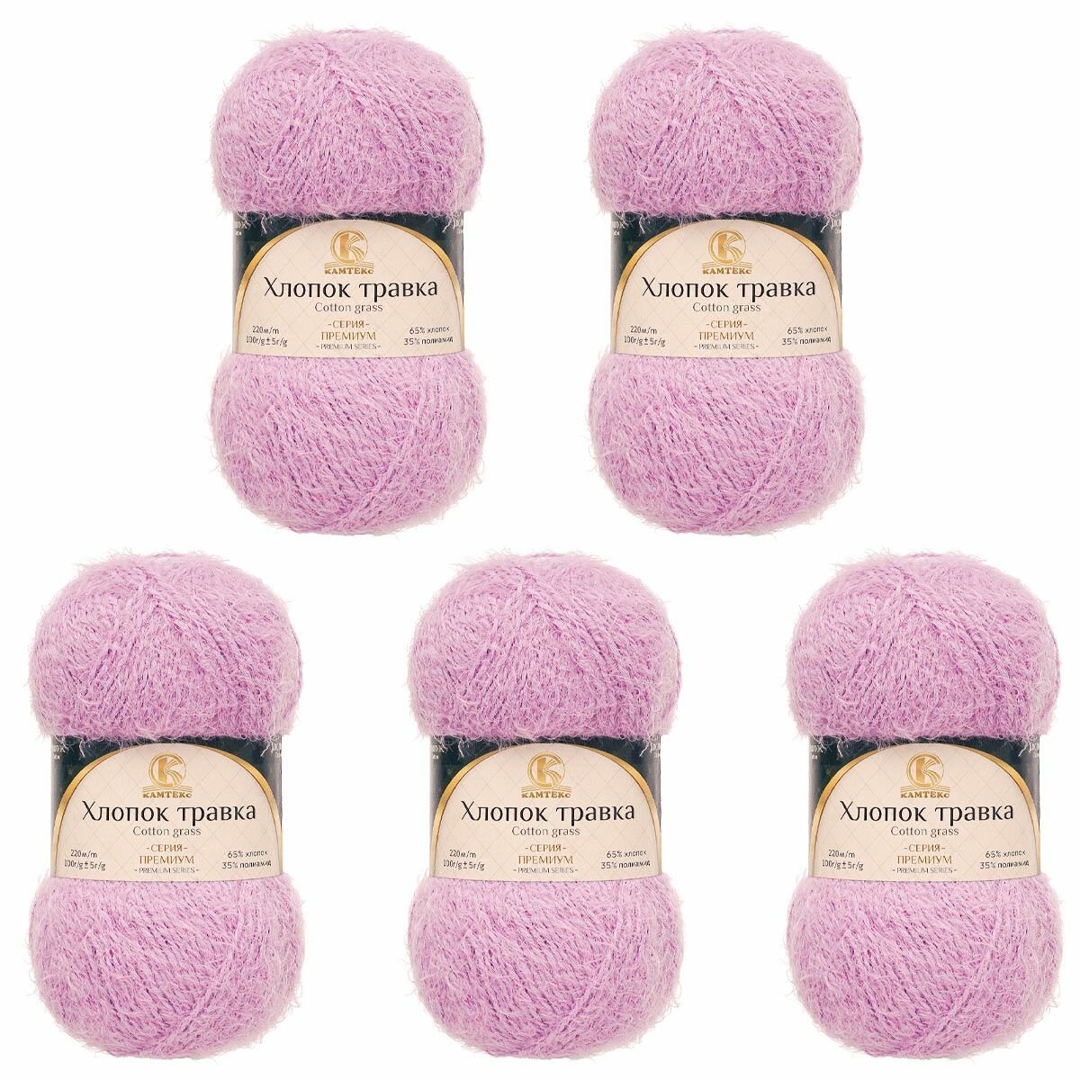 Пряжа для вязания Камтекс 'Хлопок Травка' 100г, 220м (65% хлопок, 35% полиамид) (058 сирень), 5 мотков информация: