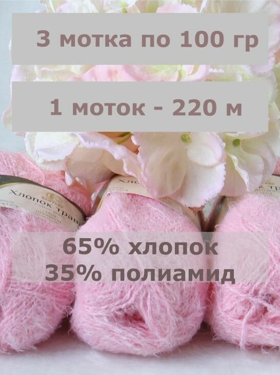10 цен на Пряжа Хлопок травка от Камтекс, цвет Светло розовый 055, 3 шт*100 г/220 м
