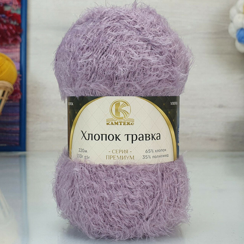 Пряжа для вязания Камтекс 'Хлопок Травка' 100г, 220м (65% хлопок, 35% полиамид) (058 сирень), 5 мотков 1 206 ₽