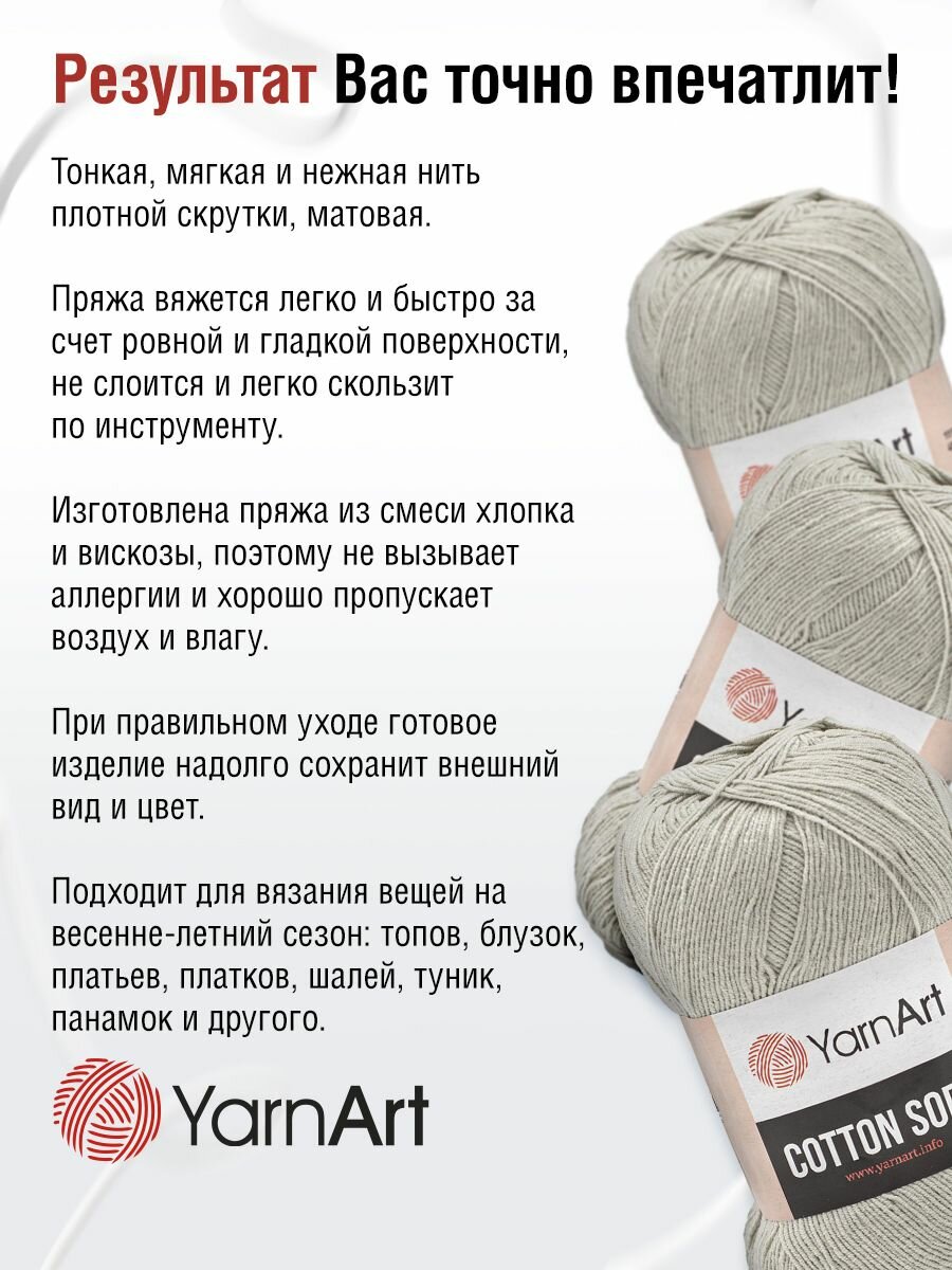 10 цен на Пряжа для вязания YarnArt 'Cotton soft' 100г, 600м (55% хлопок, 45% акрил) (49), 5 мотков