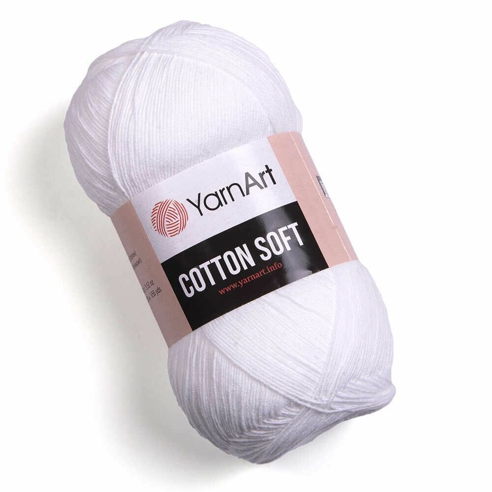 10 цен на Пряжа Cotton Soft YarnArt, белый - 62, 55% хлопок, 45% акрил, 5 мотков, 100 г, 600 м.