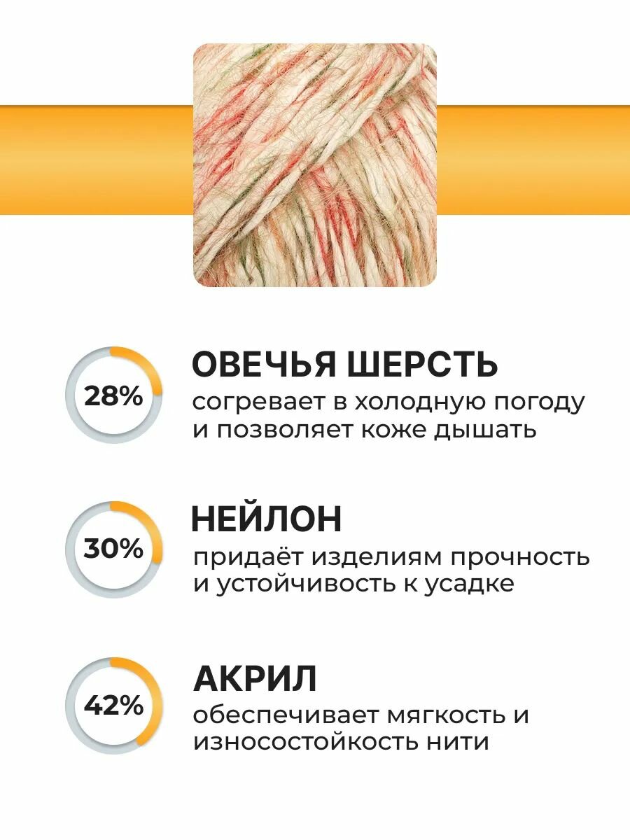 Пряжа для вязания Вязь 'Листопад' 100г, 160м (28% шерсть, 30% нейлон, 42% акрил) (03 красный принт), 3 мотка информация: