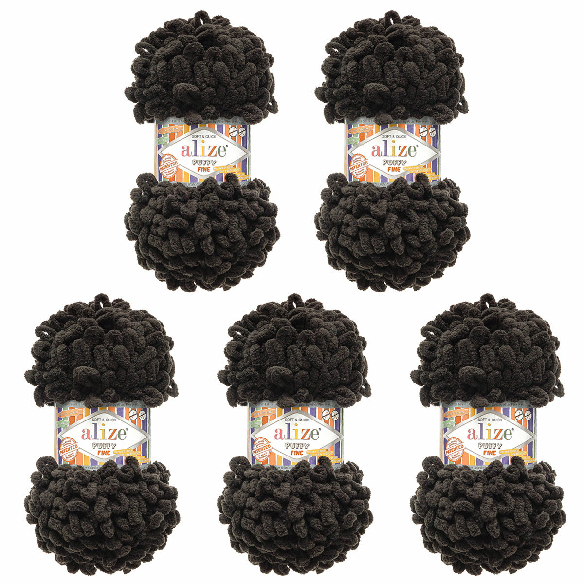 10 цен на Пряжа для вязания руками с готовыми петлями ALIZE 'Puffy Fine' 100г, 14,5м (1060 черно-серый), 5 мотков