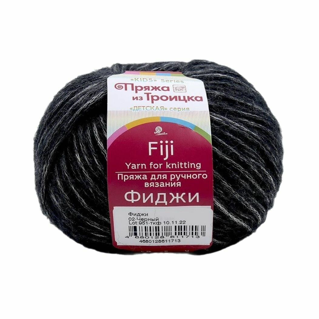 Троицкая пряжа для вязания Фиджи Черный (02) 5 мотков 50 г/95 м (60% хлопок, 20% мериносовая шерсть, 20% акрил) fiji информация: